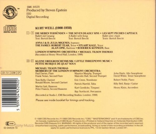 Specification: Kurt Weill: Die 7 Todsünden (The Seven Deadly Sins) / Kleine Dreigroschenmusik