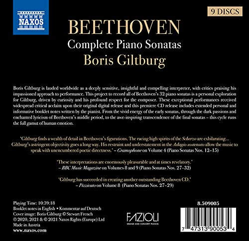 Boris Giltburg is lauded worldwide as a deeply sensitive, insightful and compelling interpreter, with critics praising his impassioned approach to performance. This project to record all of Beethoven’s 32 piano sonatas is a personal exploration for Giltburg, driven by curiosity and his profound respect for the composer. These exceptional performances received widespread critical acclaim upon their original digital release and this premiere CD release includes extended personal and informative booklet notes written by the pianist. From the vivid energy of the early sonatas, through the dark passions and enchanted lyricism of Beethoven’s middle period, to the awe-inspiring transcendence of the final sonatas – this cycle runs the full gamut of human emotion.