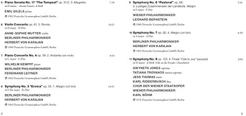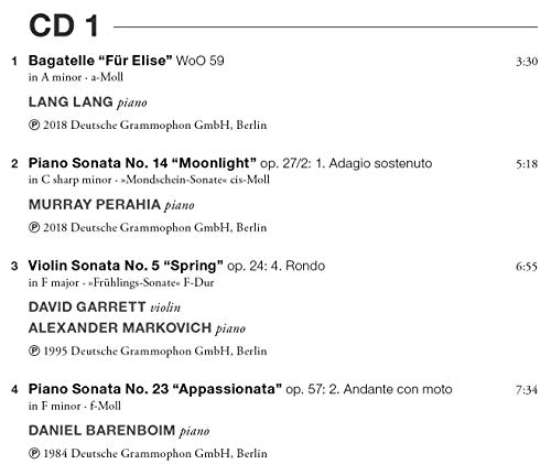 Zum 250. Geburtstag Beethovens erscheinen die bekanntesten Werke Beethovens in einem kompakten Doppelalbum. Von der “Mondscheinsonate” bis hin zum weltberühmten “Für Elise” werden alle Werke von den großen Namen der Klassikszene interpretiert: Lang Lang, Anne-Sophie Mutter, Herbert Karajan, den Wiener und den Berliner Philharmonikern. „The very Best of Beethoven“ ist der perfekte Einstieg in Beethovens Musik und erfasst das volle Spektrum seines Schaffens: von den schönsten Einzelstücken und -sätzen bis zur genialischen „Schicksalssymphonie“ in voller Länge, vom kompletten 5. Klavierkonzert “Emperor” mit Krystian Zimerman bis zum Einleitungssatz der “Eroica”. Eine umfassende Geburtstags-Anthologie zu einem herausragend günstigen Preis.